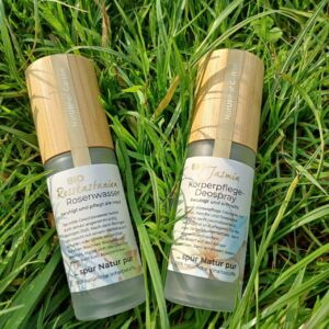 Fühl dich blumig-erfrischt mit dem Jasmin Körperpfege Deospray. Natron neutralisiert Gerüche, Kamille und Rosskastanie wirken sanft beruhigend und pflegend für die Haut. Ringelblumenextrakt (Oxymel) wirkt regenerierend. Für die sanfte Beduftung…