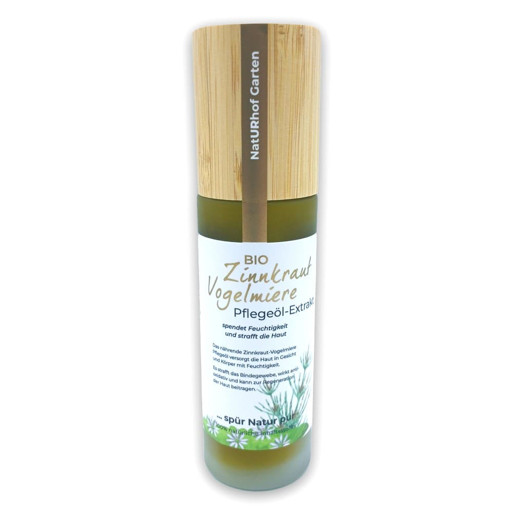 Gönn deiner Haut die pure Kraft der Natur für Gesicht und Körper! Unser intensives Zinnkraut Vogelmiere Pflegeöl Extrakt aus Zinnkraut (Ackerschachtelhalm) und Vogelmiere aus unserem sonnenverwöhnten NatURhof Garten im Südburgenland, extrahiert im Heißölverfahren für eine besonders pflegende Wirkung, vereint natürliche Kieselsäuren für ein geschmeidiges, gepflegtes und sichtbar ebenmäßiges Hautbild– Tag und Nacht.