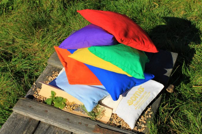 Duftende Füllung aus: Dinkelspelze gereinigt, Pfefferminze, Kamille, Zitronenmelisse, Lavendel und Rosmarin aus heimischer Landwirtschaft.