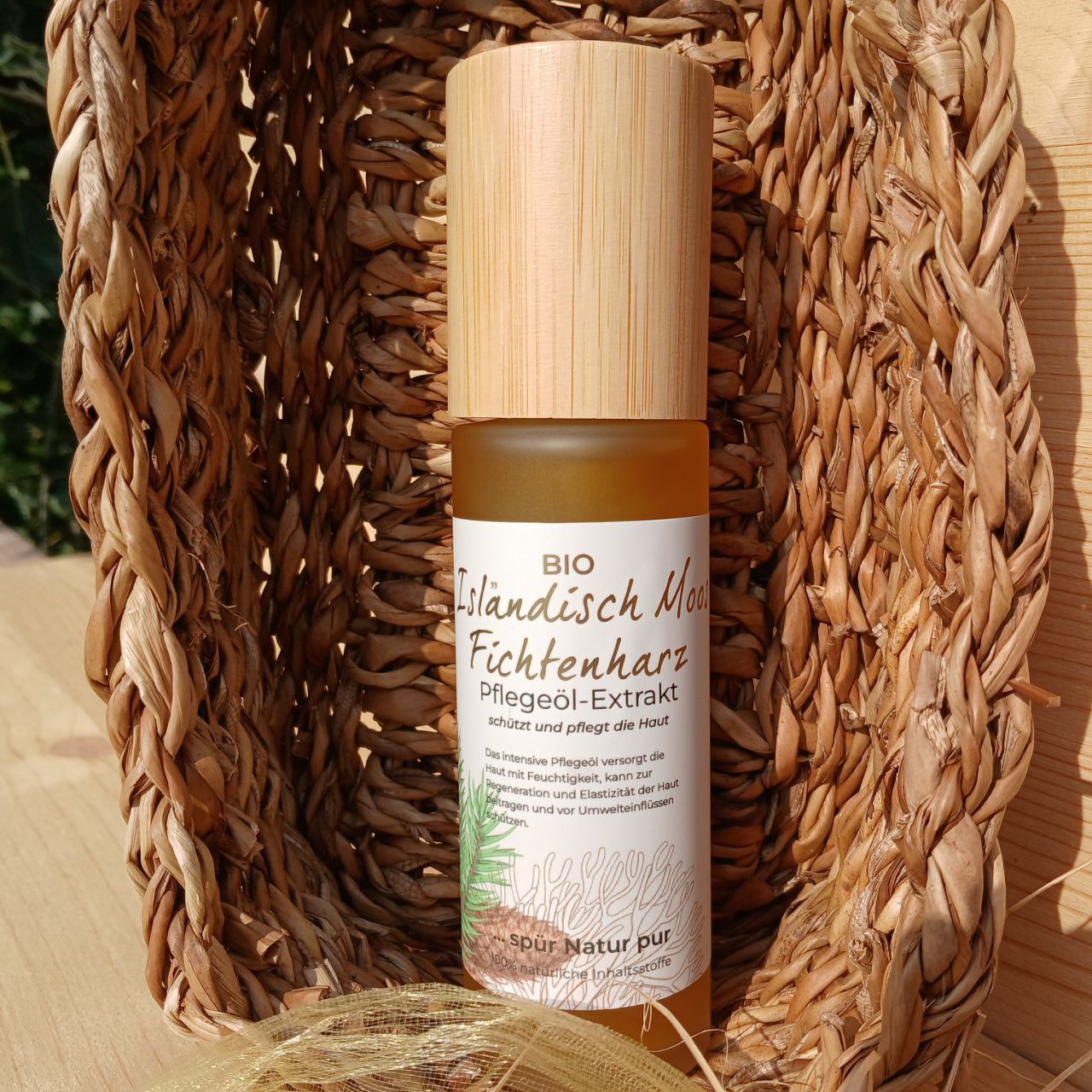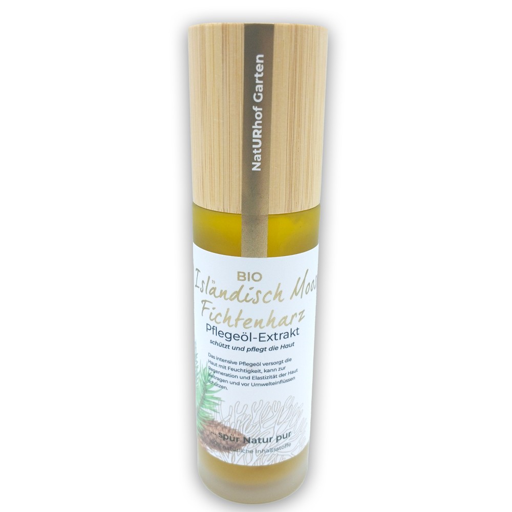 Harzig-süßlich, frisch duftet das intensive Isländisch Moos Fichtenharz Pflege Öl. In Bio Jojobaöl extrahiert, nährt es die Feuchtigkeit deiner Haut, kann regenerierend bei Akne, zellschützend und straffend wirken. Schützt vor Umwelteinflüssen.