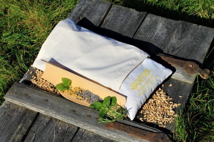 Füllung: Dinkelspelze gereinigt, Pfefferminze, Kamille, Zitronenmelisse, Lavendel und Rosmarin aus heimischer Landwirtschaft.