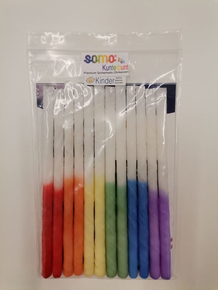 PREMIUM Sicherheitsohrkerzen mit kleinerem Durchmesser zur Anwendung bei Kindern, Jugendlichen und bei Menschen mit kleiner Ohrmuschel. Tropfschutz integriert.